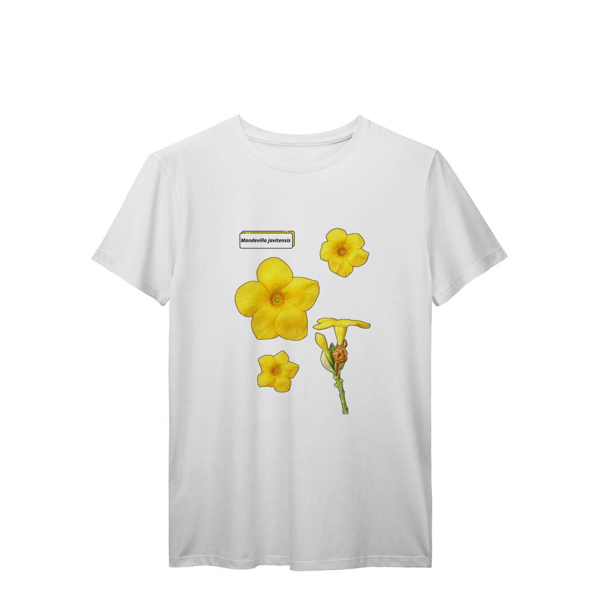 Leve a exuberância da Amazônia com você! Nossa camiseta celebra a Mandevilla javitensis , uma flor deslumbrante das campinaranas, que revela a beleza escondida no meio dos solos lixiviados da floresta. Feita com 100% algodão, em meia malha penteada de alta qualidade, costura reforçada, esta peça combina conforto e estilo. Ideal para quem ama a natureza e deseja expressar sua conexão com a biodiversidade da Amazônia.