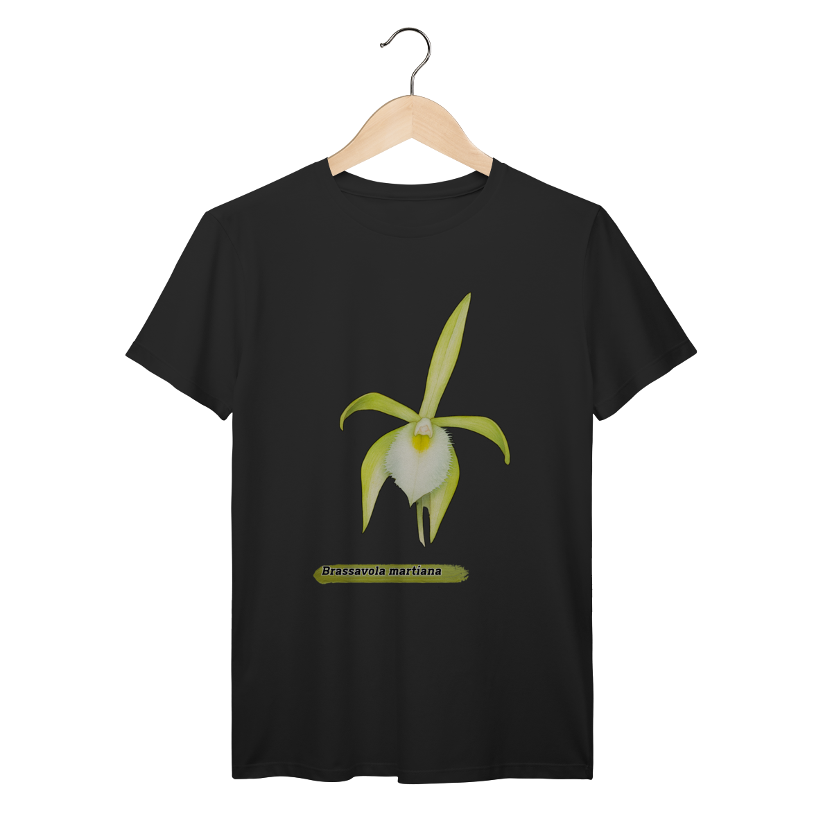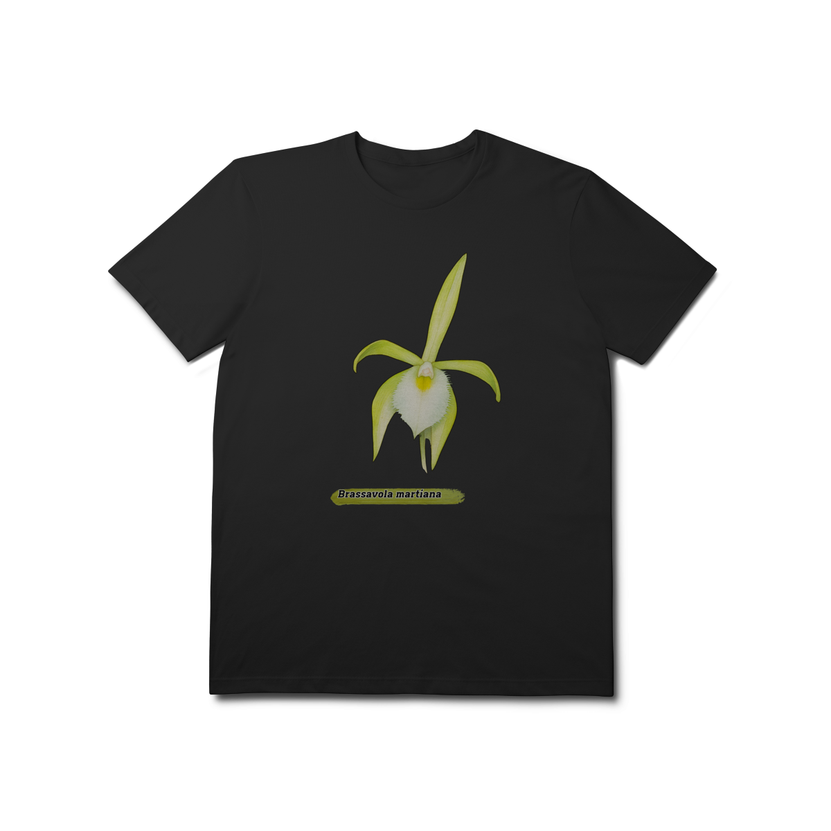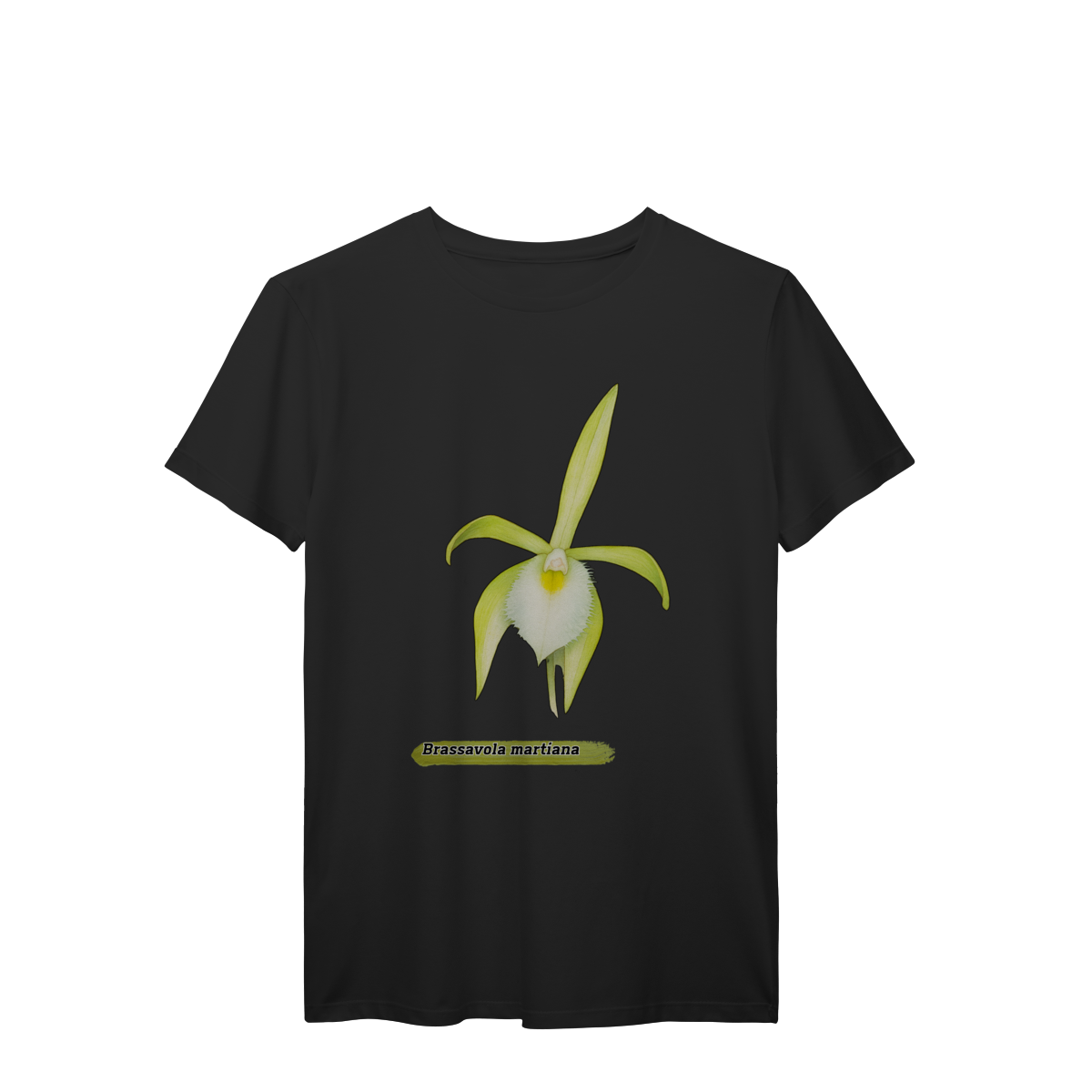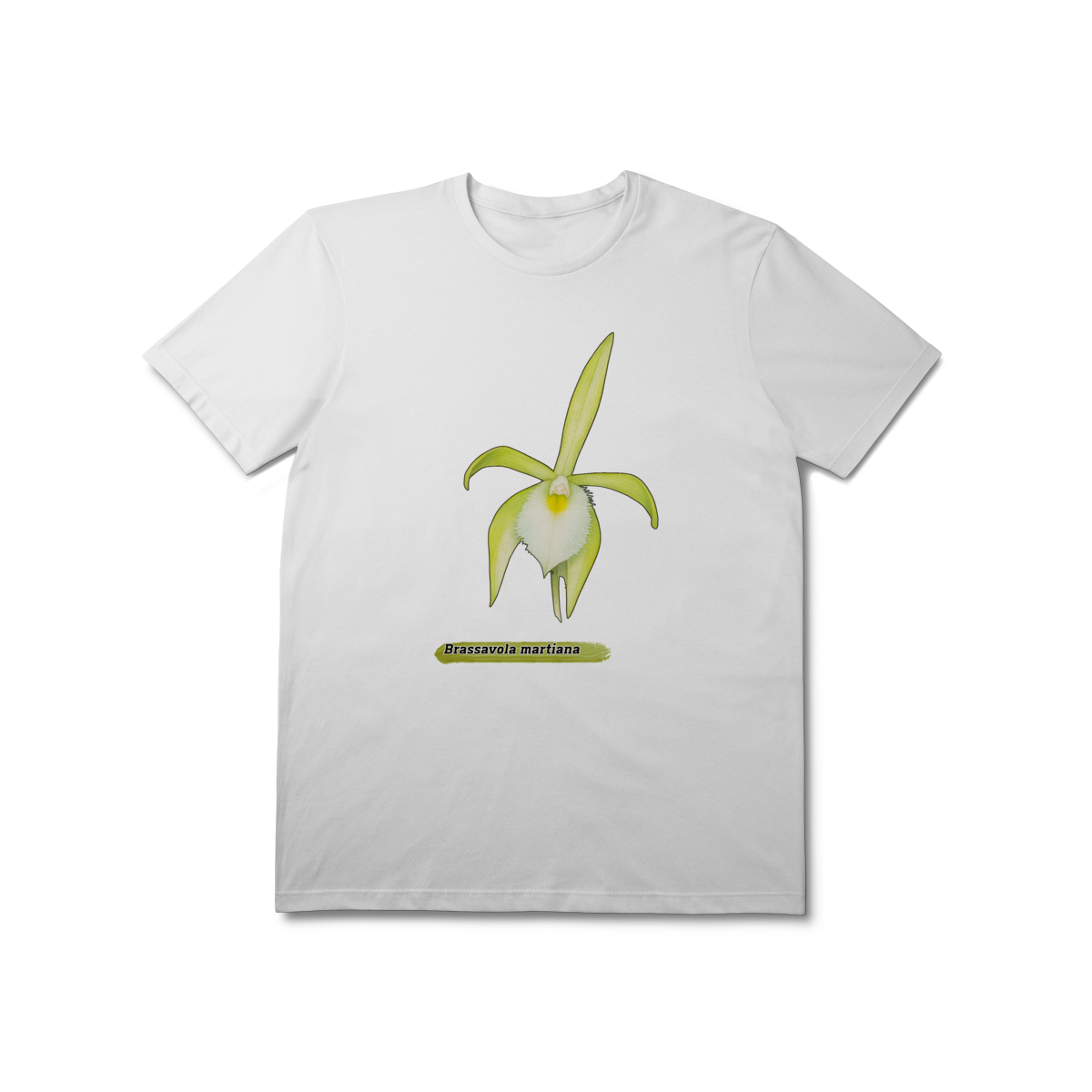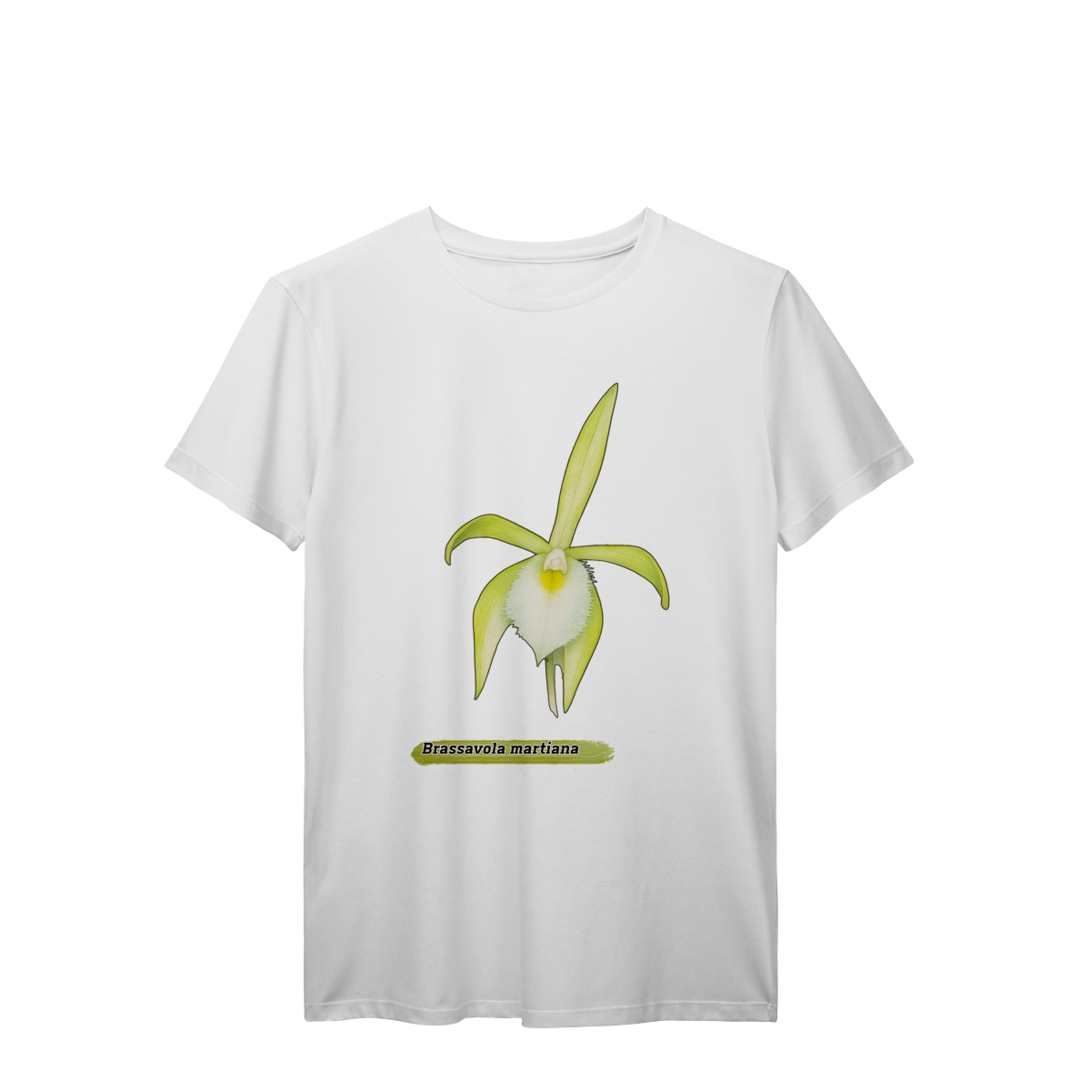 Encante-se com a beleza rara da Brassavola martiana, uma orquídea de presença delicada e sofisticada, nativa das florestas brasileiras. Nesta camiseta, a flor é representada com traços suaves e artísticos, destacando suas pétalas alongadas e o contraste marcante do labelo branco. Um tributo à riqueza botânica da Amazônia, ideal para amantes da natureza, da arte e da originalidade.