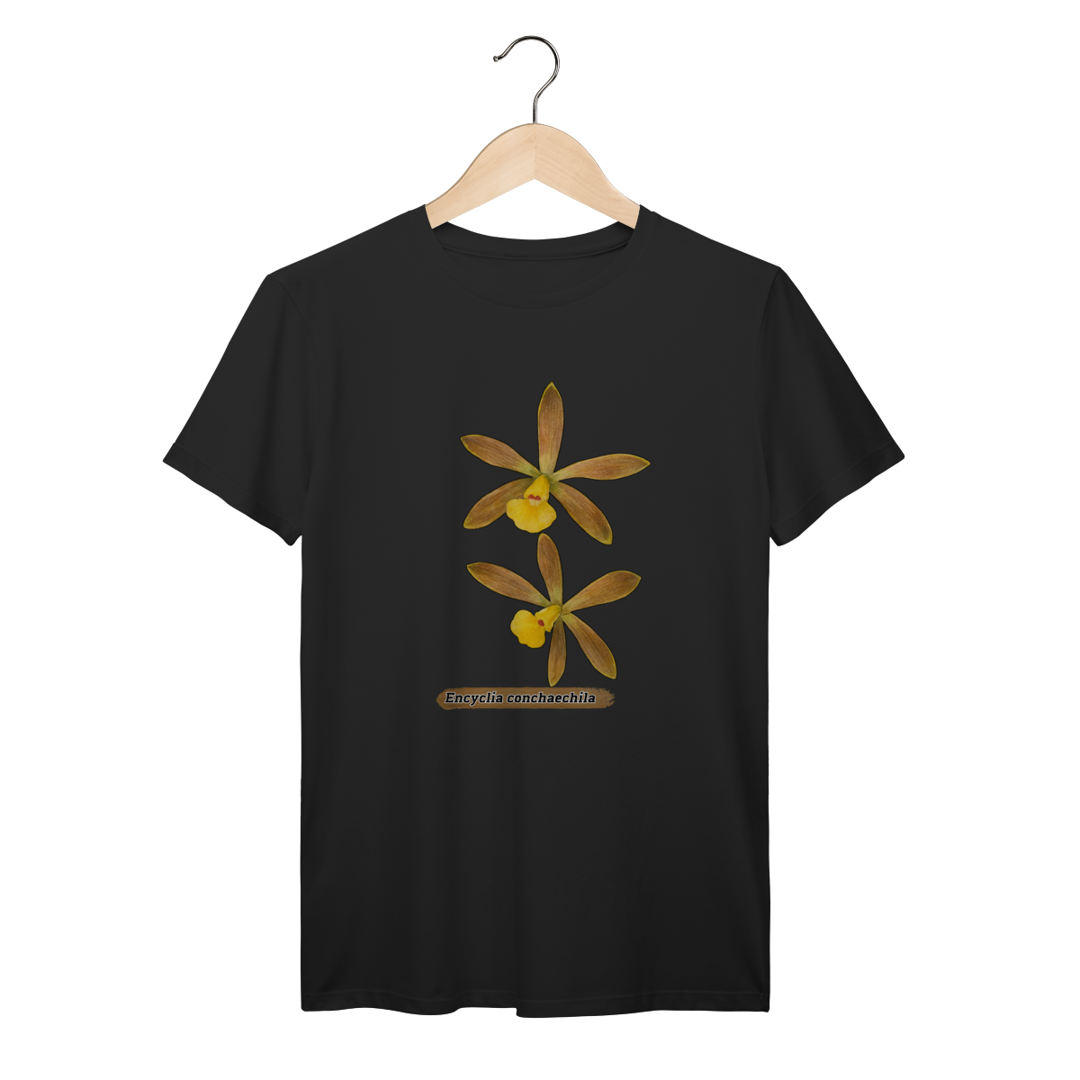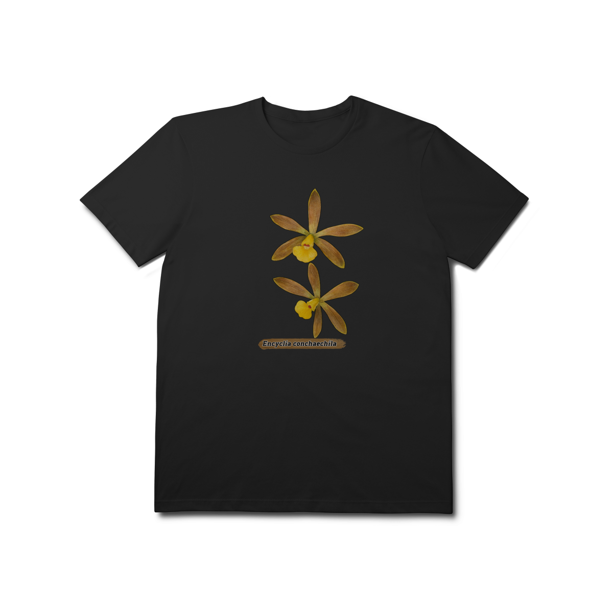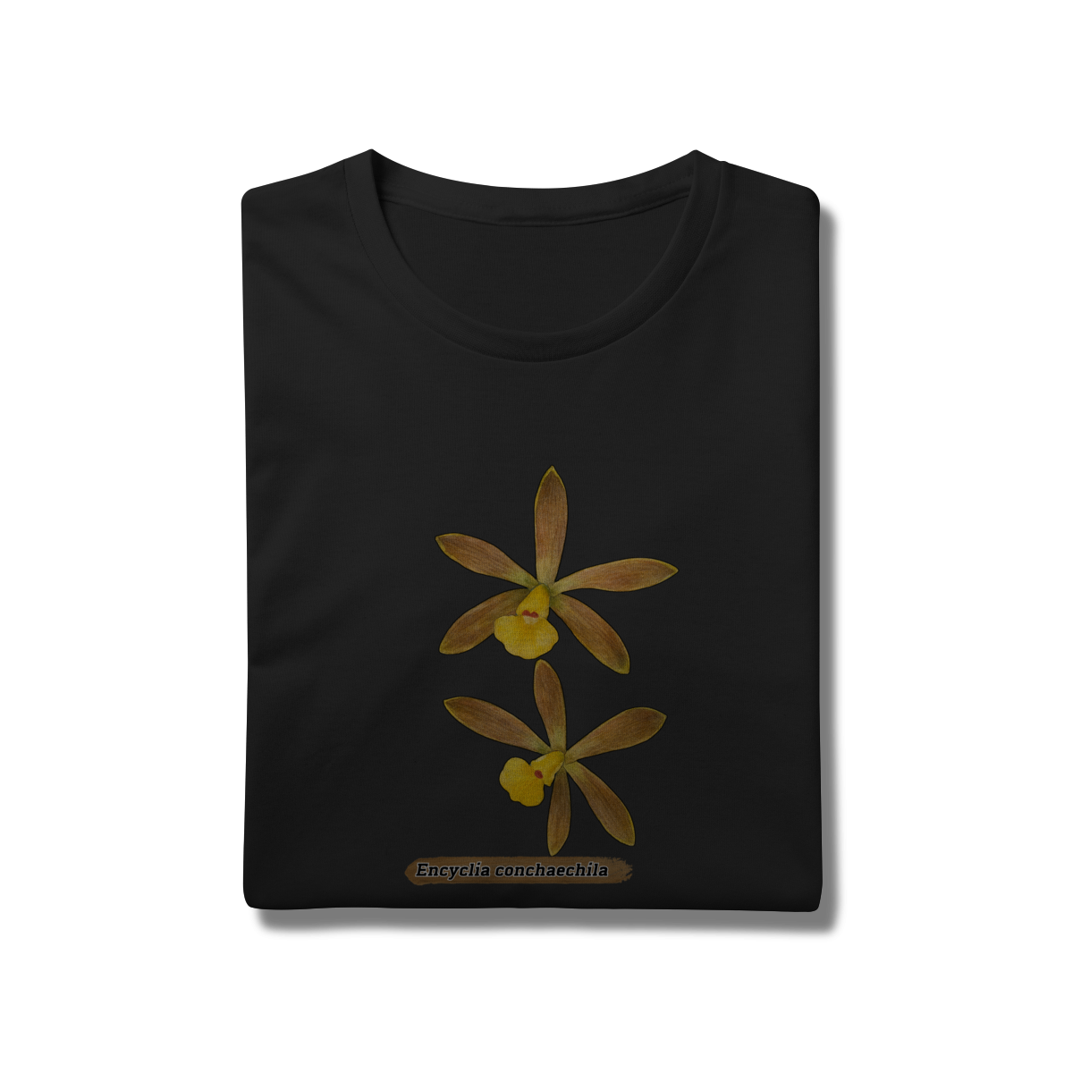A flora da Amazônia com esta estampa única da orquídea Encyclia conchaechila, uma espécie nativa e encantadora. A arte traz a delicadeza das pétalas em tons suaves, contrastando com folhas tropicais e detalhes botânicos, perfeita para quem ama natureza, biodiversidade e estilo com identidade regional. Ideal para uso casual ou como peça statement em eventos culturais e ambientais.
